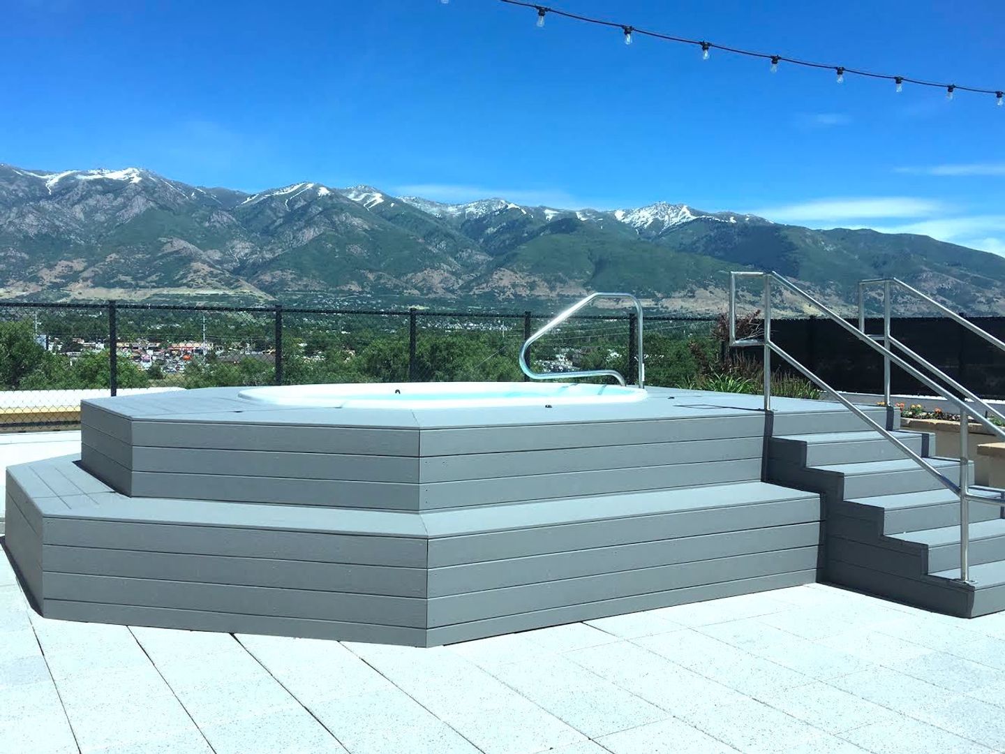 Our rooftop deck offers stunning views of the mountains, the Great Salt Lake, and Antelope Island. Several comfortable areas to gather, a built-in BBQ grill, and a hot tub will complete your city-style rooftop experience.
