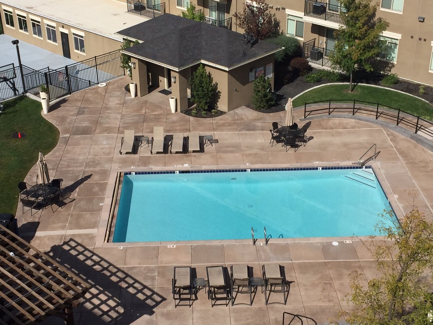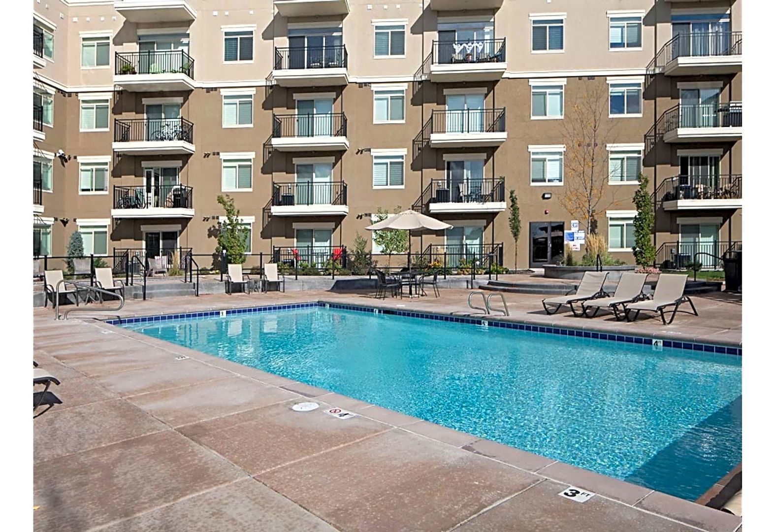 Our beautiful courtyard features a large pool and in-ground spa (open year-round), a fire pit, and built-in BBQ grills, perfect for entertaining.