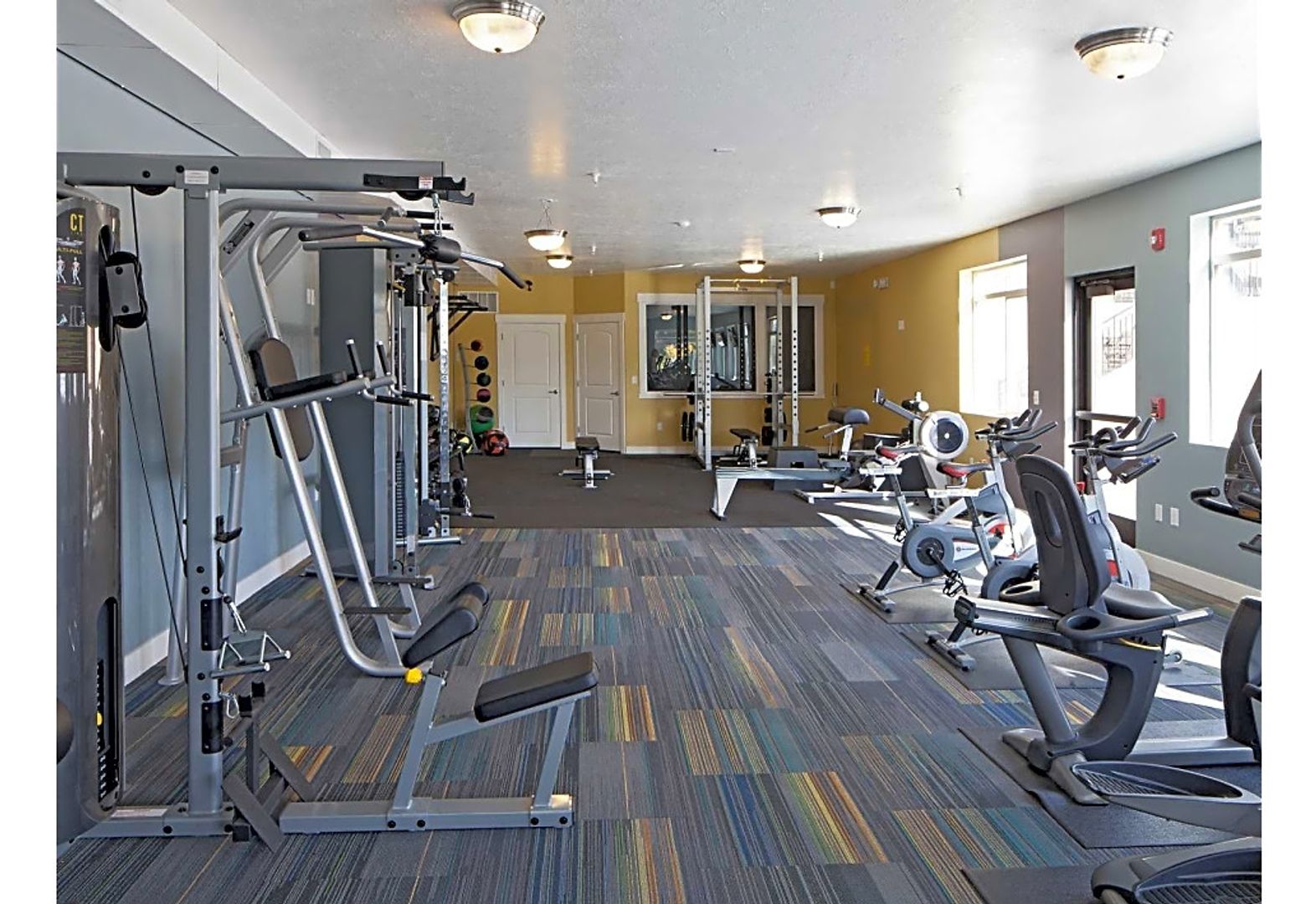 We have a very well-equipped, 1300 SQ FT 24-hr fitness center, a large fenced dog park where your pup can play with their community pup friends, 2 basketball standards in our enclosed sports court, 3 ELEVATORS, and indoor controlled-access parking garages.