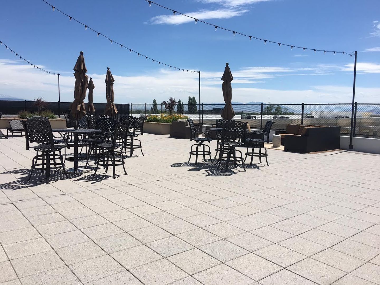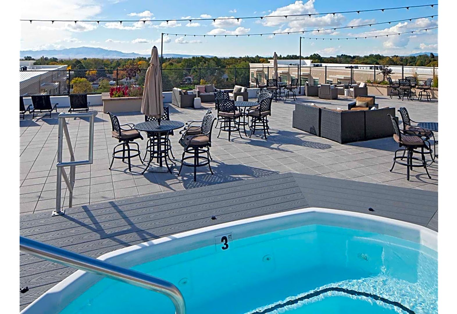 Our rooftop deck offers stunning views of the mountains, the Great Salt Lake, and Antelope Island. Several comfortable areas to gather, a built-in BBQ grill, and a hot tub will complete your city-style rooftop experience.