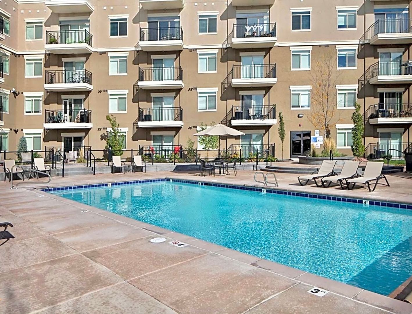 Our beautiful courtyard features a large pool and in-ground spa (open year-round), fire pit, and built-in BBQ grills for the best entertaining.