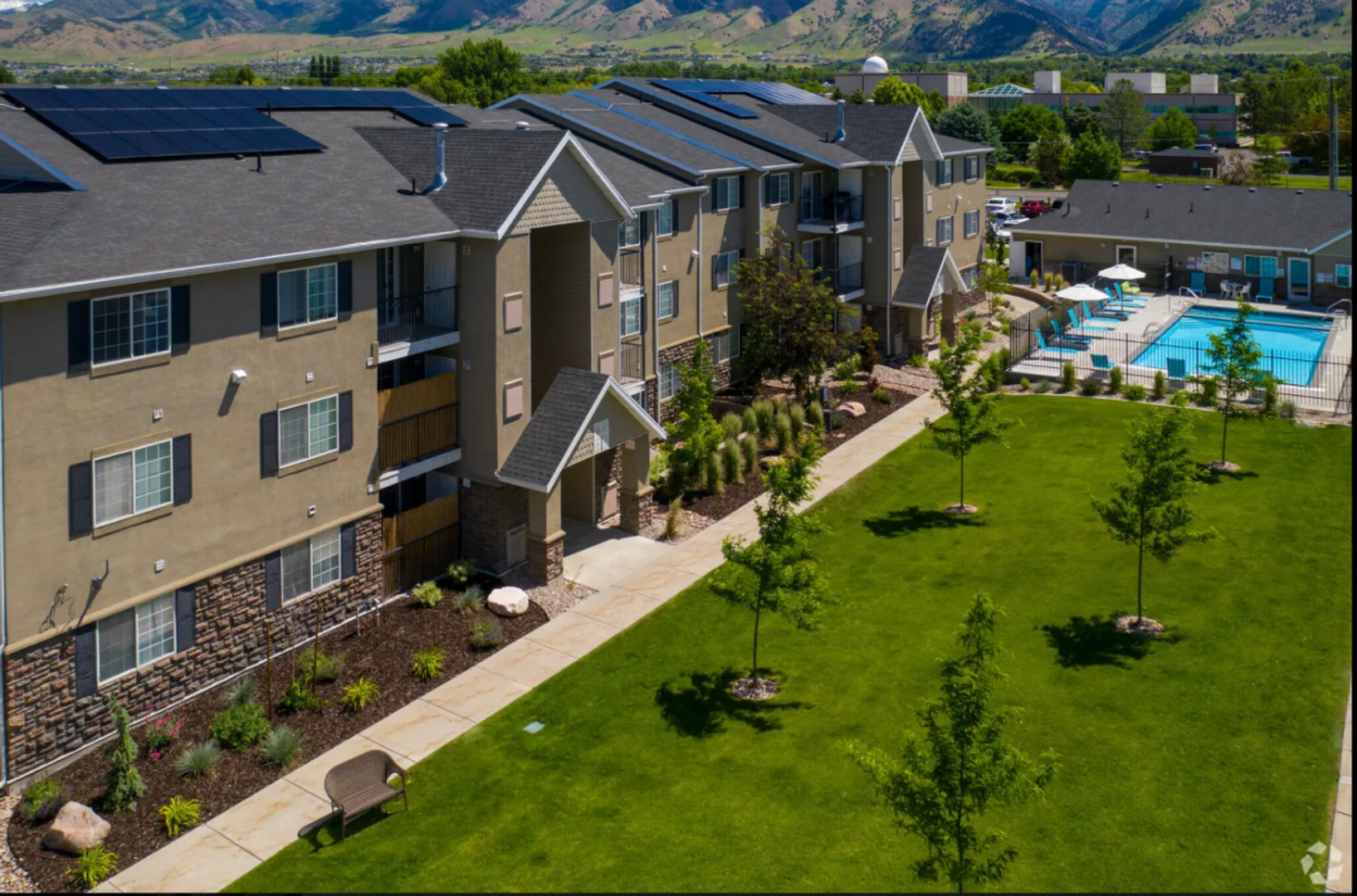 Our community includes a pool, year-round hot tub, 24-hour fitness center, large open outdoor areas, a playground, and two fenced dog parks.